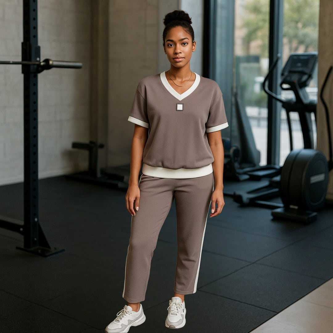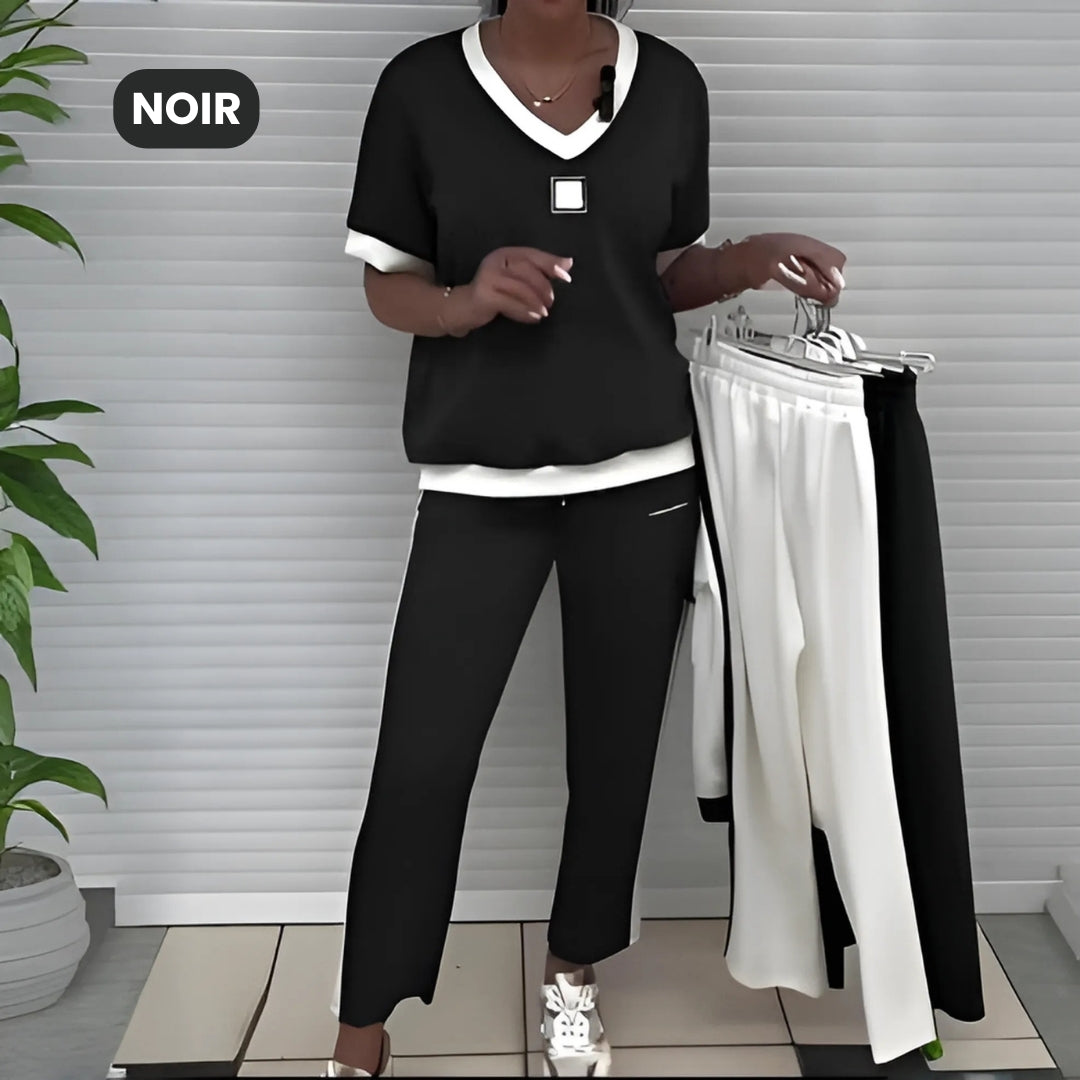Elevate your everyday wardrobe with the Serenity Set, a coordinated ensemble that combines comfort and style. The V-neck top offers a flattering silhouette, while the matching trousers provide a relaxed fit for all-day wear. Whether you're working from home, running errands, or enjoying a casual outing, this set ensures you look effortlessly chic.